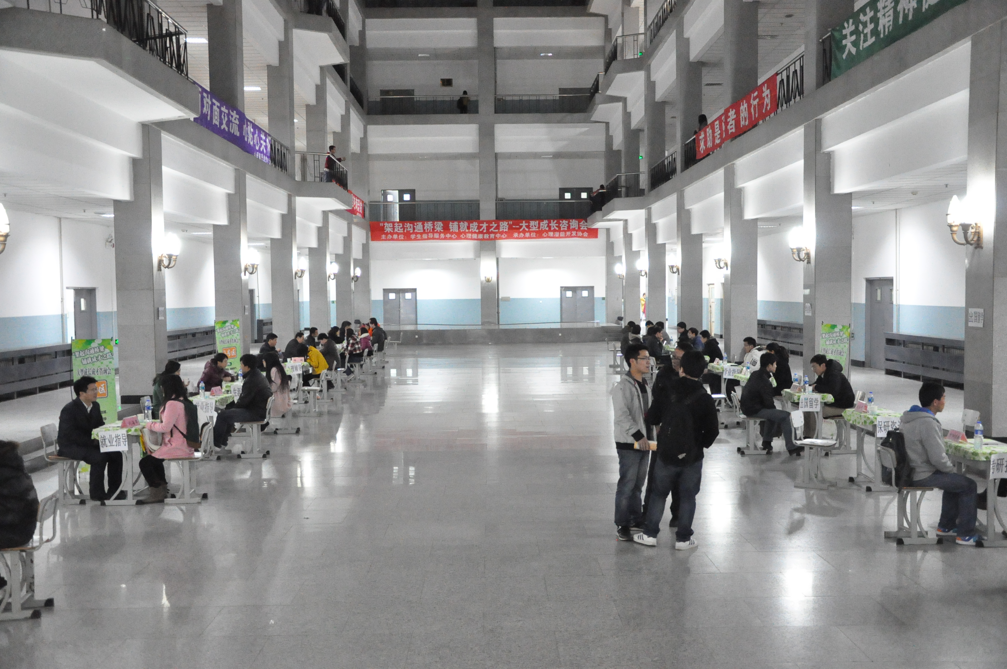 2012年3月25日晚,由学生指导服务中心心理健康教育中心主办、心理潜能开发协会承办的“架起沟通桥梁,铺就成才之路”大型成长成才咨询活动又一次在何世礼教学馆一楼大厅成功举办。