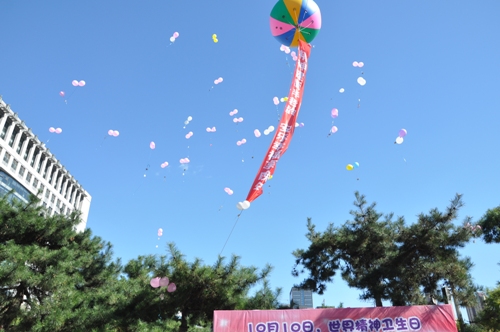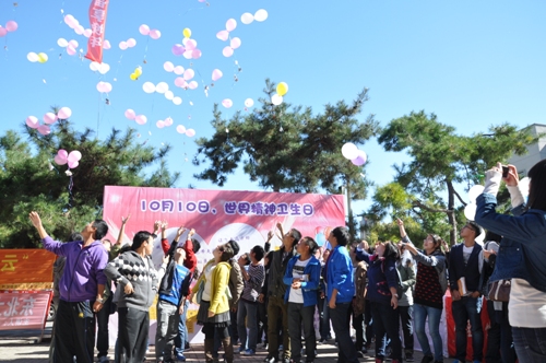 10月10日中午,在大学生活动中心东侧广场,由心理健康教育中心主办,心理潜能开发协会承办的“放飞你的祝福——让飞去远方的氢气球带走你的心愿”活动成功举办。该活动作为世界精神卫生日系列宣传活动的开幕仪式,吸引了大量同学前来参与。活动现场,同学们纷纷在工作人员提供的卡片上留下了自己祝福的语言,并把卡片系在氢气球上,最后统一放飞到空中,寓意着让飞去远方的氢气球将大家的祝福带回给家乡的亲人,亦或是天堂已逝的故人。为了宣传本次世界卫生日的主题,活动现场还设置了喷绘、条幅、传单等宣传品,结合宣传口号以及让同学们亲笔留下祝福的话、亲手放飞祝福的气球等形式,使同学们对本次活动的主题有了更加深刻的认识和体会。