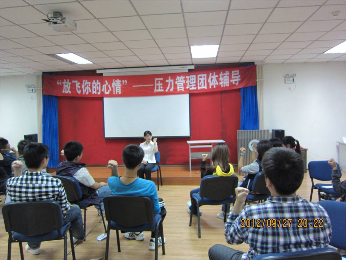 9月27日晚,由心理健康教育中心主办的“放飞你的心情”压力管理团体辅导在学生活动中心300室成功举办。来自信息学院2009级的部分学生参与了这项活动。