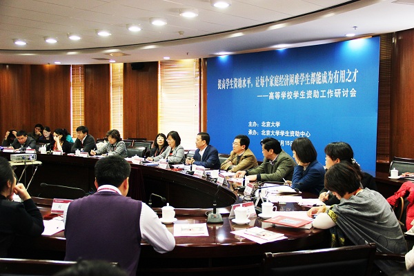 11月15日,高等学校学生资助工作研讨会在北京大学顺利举办。研讨会以“提高学生资助水平,让每个家庭经济困难学生都能成为有用之才”为主题,深入学习贯彻党的十八大精神。全国学生资助管理中心副主任马建斌,北京大学党委副书记叶静漪,全国学生资助管理中心高校学生资助处处长周春树,北京市学生资助管理中心主任张思堂等出席会议并讲话。香港中文大学、清华大学、北京大学等34所高校学生资助机构负责人参会研讨,我校学生指导服务中心副主任刘青瑞参会并作典型发言。