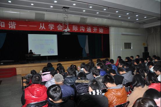 11月25日晚,由心理健康教育中心主办的“和谐----从学会人际沟通开始”讲座在大学生活动中心多功能厅举行。