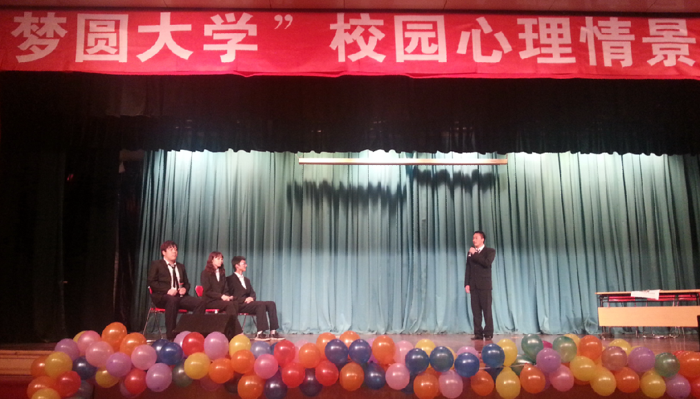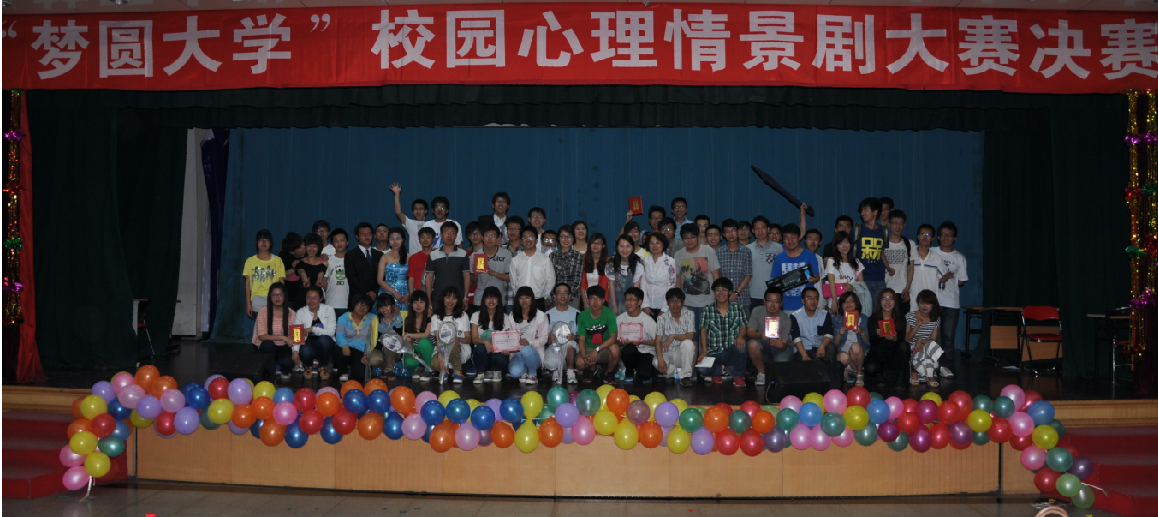 2013年5月27日晚6:30,学生指导服务中心心理健康教育中心主办,心理潜能开发协会承办的“梦圆大学”校园心理情景剧大赛决赛在大学生活动中心一楼多功能厅成功举办,共有来自五个学院的六支代表队伍同台角逐。学生指导服务中心副主任刘青瑞以及各学院心理辅导员作为嘉宾评审观看了比赛。