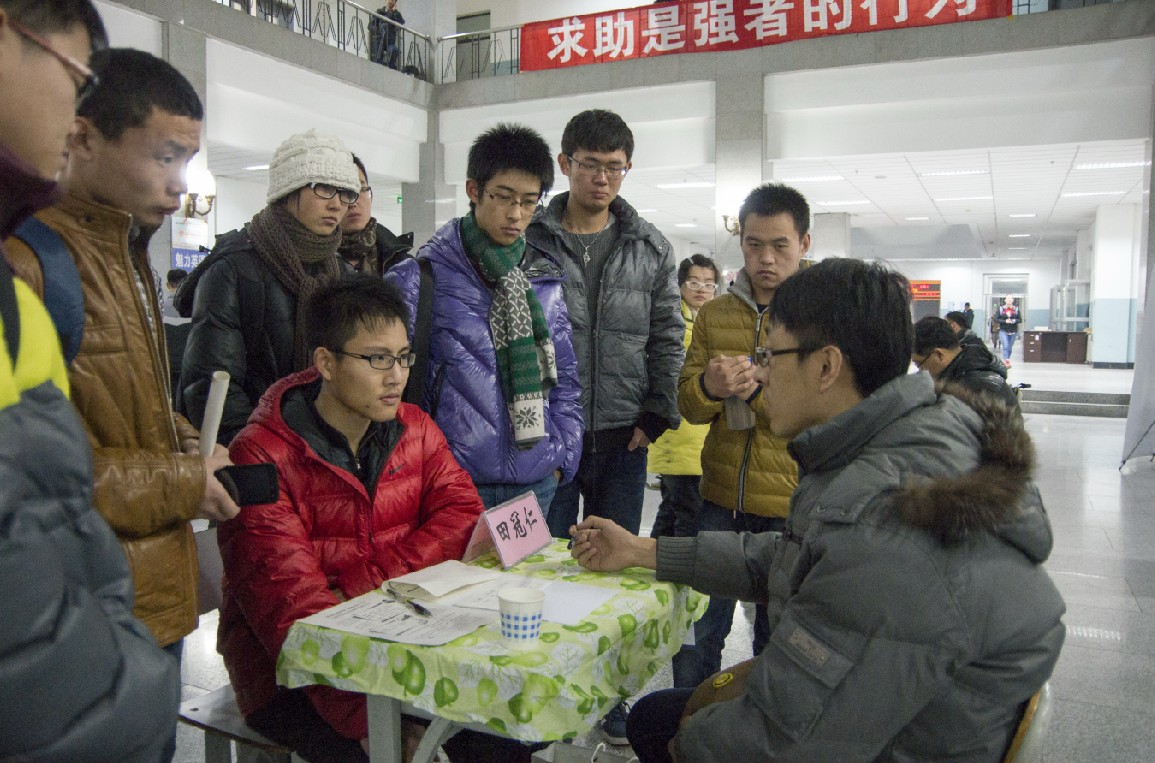 2013年12月1日晚,由东北大学学生指导服务中心主办的“架起沟通桥梁,铺就成才之路”大型成长成才现场咨询活动在何世礼教学馆一楼大厅成功举办。