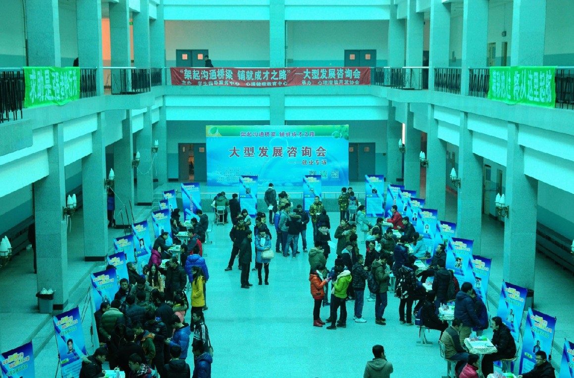 2014年12月14日上午,由东北大学学生指导服务中心主办的“架起沟通桥梁,铺就成才之路”大型成长成才现场咨询会——就业专场在南湖校区何世礼教学馆一楼大厅成功举办。