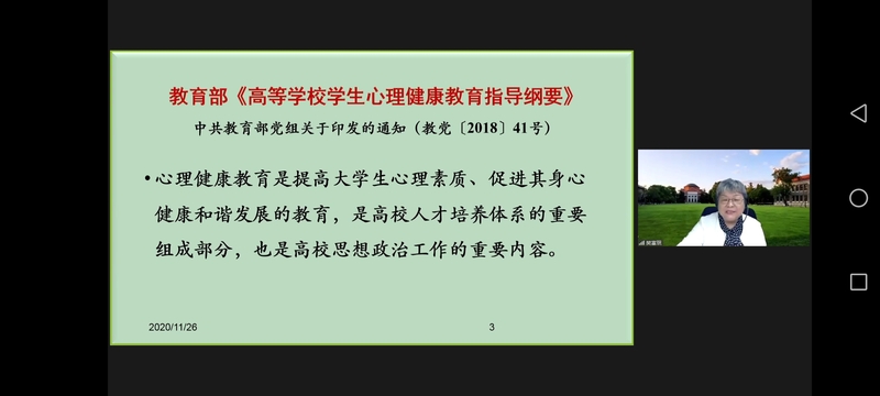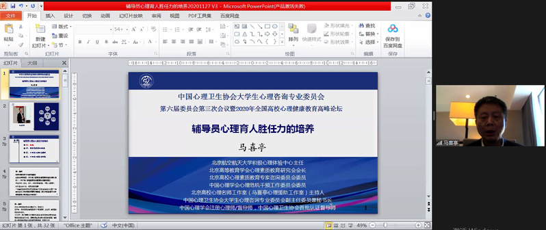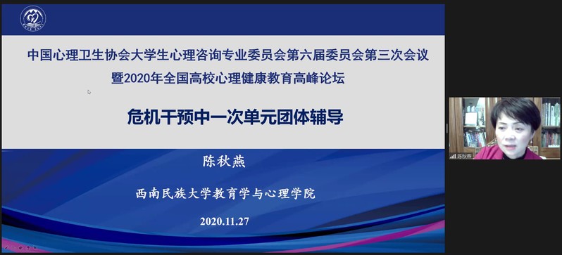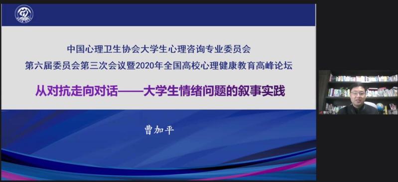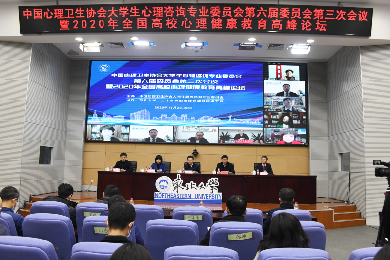 11月26-28日,由中国心理卫生协会大学生心理咨询专业委员会主办,东北大学和辽宁省高校心理健康教育研究会承办的中国心理卫生协会大学生心理咨询专业委员会第六届委员会第三次会议暨2020年全国高校心理健康教育高峰论坛在东北大学以线上线下结合的方式举行。教育部普通高等学校心理健康教育专家指导委员会主任、北京师范大学资深教授林崇德,教育部普通高等学校心理健康教育专家指导委员会副主任、上海交通大学党委书记杨振斌,中国心理卫生协会理事长马辛教授,中国心理卫生协会大学生心理咨询专业委员会主任、清华大学李焰教授,辽宁省委教育工委宣传部(思政处)部长刘大力,东北大学党委副书记张国臣出席开幕式。全国心理健康教育专家、各高校心理健康教育教师500余人线上参会,东北大学全体学生工作干部参加开幕式现场活动。