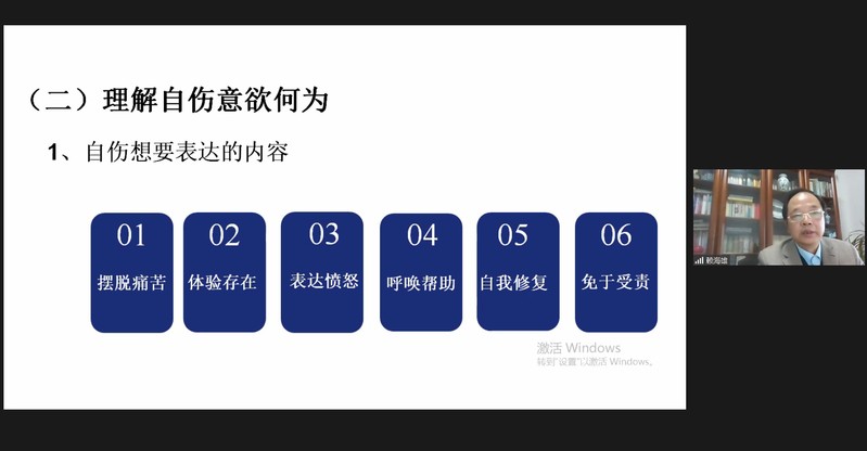 杨振斌在讲话中指出,要做好大学生思想政治工作,心理育人必不可少。在中国高校,心理健康教育工作是思政工作的有机组成部分,同时它又有独特的规律,是思想政治工作的重要扩展。大学生心理健康工作包括很多方面,但最重要的是全体学生身心素质的全面提高。通过心理健康教育,让学生心理素质能够有所改进和提高,让心灵入港;通过心理健康教育,重新认识自己,更好地为未来而努力,让理想起航。要构建心理教师、教学人员、学生工作干部、后勤管理、生活服务人员在内的全员心理育人系统。学生工作干部作为心理育人系统的重要组成部分,要不断提升工作能力,做好学生思想工作的同时也做好心理工作,这是心理健康教育与思想政治教育深度融合的具体体现,也是切实提高高校思政工作实效的重要途径。