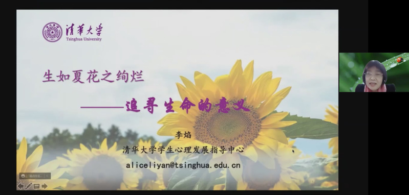 开幕式后,中国心理卫生协会大学生咨询专业委员会主任、清华大学学生心理发展指导中心主任李焰教授作题为《生如夏花之绚烂——追寻生命的意义》的线上讲座。她通过热点新闻资料、大量数据及丰富案例,引导教育学生如何应对挫折、乐观生活。全省高校师生11.6万人次在线观看直播。