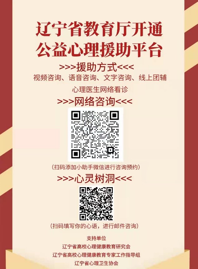 为帮助省内高校、尤其是大连地区高校师生加强心理防护,积极应对疫情,省委教育工委、省教育厅委托辽宁省高校心理健康教育研究会、高校学生心理健康教育专家工作指导组及辽宁省心理卫生协会,组建了一支涵盖143名高校专兼职心理咨询师及31名心理科医生的专业资质齐备、业务过硬、危机干预经验丰富的心理志愿者服务团队,于11月15日开通并运行“辽宁高校公益心理援助平台”,面向辽宁省内高校,优先服务受疫情影响严重地区的师生。