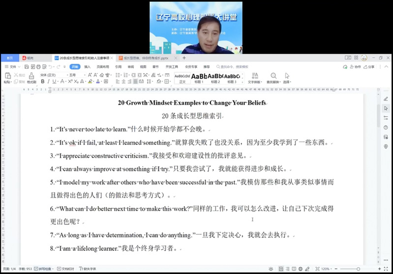 9月13日,由省委教育工委、省教育厅主办,辽宁省高校心理健康教育研究会承办的“辽宁高校心理阳光大讲堂”举办了第八期讲座,东北大学组织并主持本次讲座。北京交通大学心理素质教育中心副主任、副教授张驰作题为“成长型思维伴你终身成长”的线上讲座,7.1万人次在线观看直播。