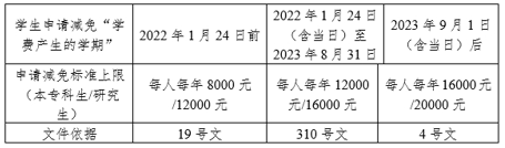 1.对应征入伍服义务兵役前正在高等学校就读的学生(含按国家招生规定录取的高校新生),服役期间按国家有关规定保留学籍或入学资格、退役后自愿复学或入学的,实行学费减免;