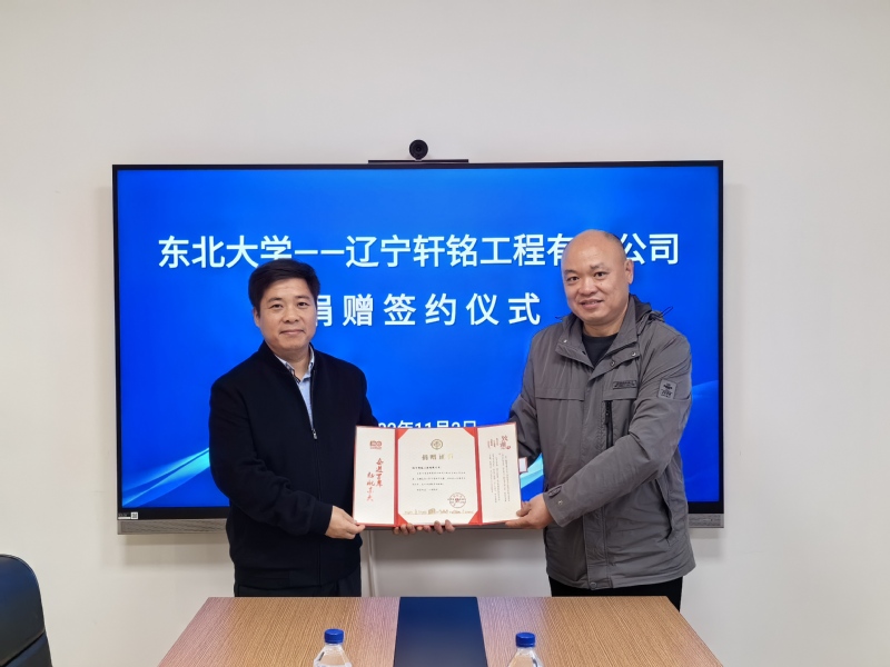 会上,双方代表签署捐赠协议。根据协议,辽宁轩铭工程有限公司向学校一次性捐赠人民币十万元用于设立轩铭助学金,旨在帮助优秀家庭经济困难学生顺利完成学业。