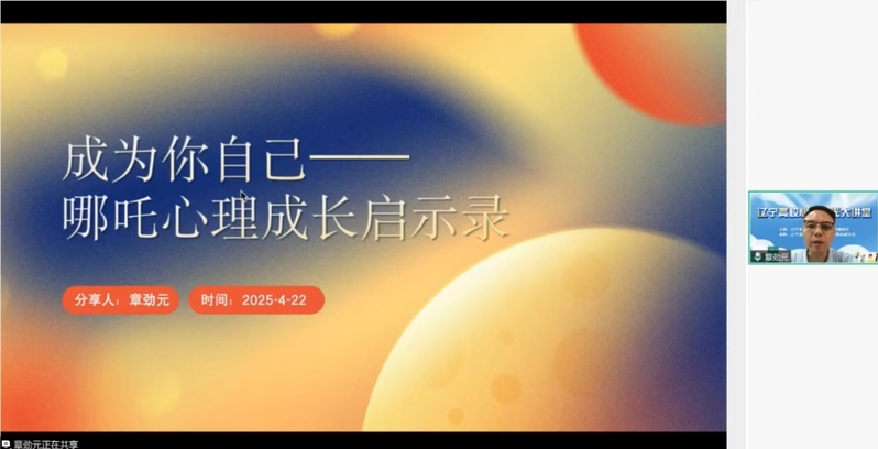 4月22日,由辽宁省委教育工委、省教育厅主办,辽宁省高等学校心理健康教育研究会承办的“辽宁高校心理阳光大讲堂”第二十期讲座在线上举办,东北大学组织并主持本次活动。华中科技大学心理健康教育中心主任章劲元作题为“成为你自己——哪吒心理成长启示录”讲座,2万余名省内高校师生在线观看。