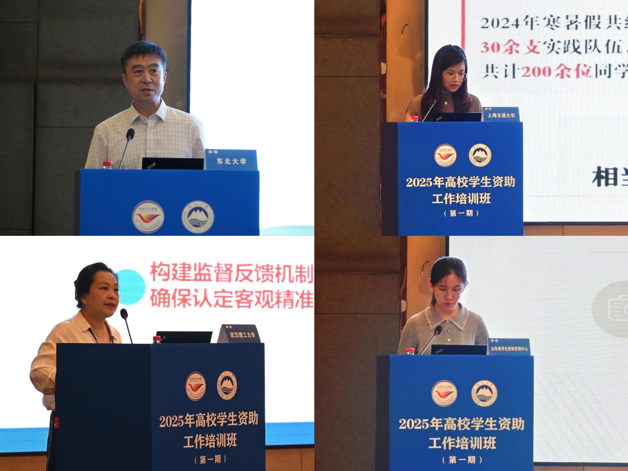 东北大学、上海交通大学、武汉理工大学、山东省分别围绕心理、就业、资助相融合的全过程育人体系建设,研究生资助育人工作,家庭经济困难学生认定,学生资助规范管理等作经验交流分享。