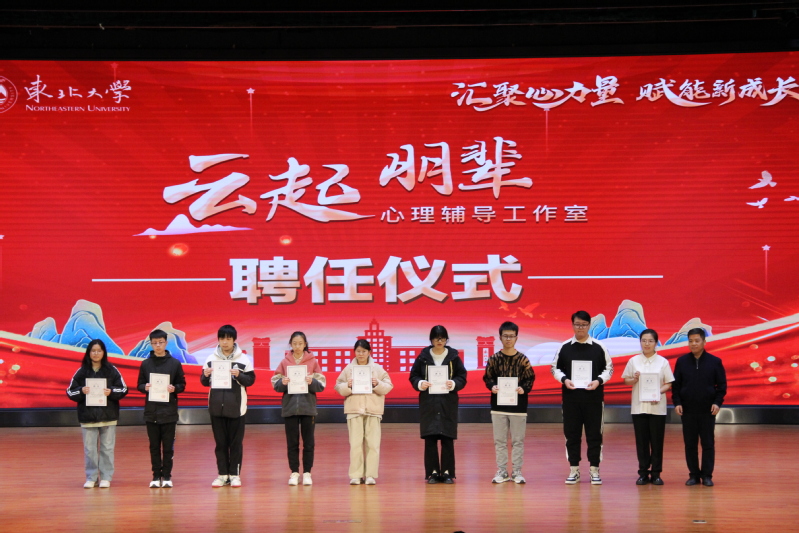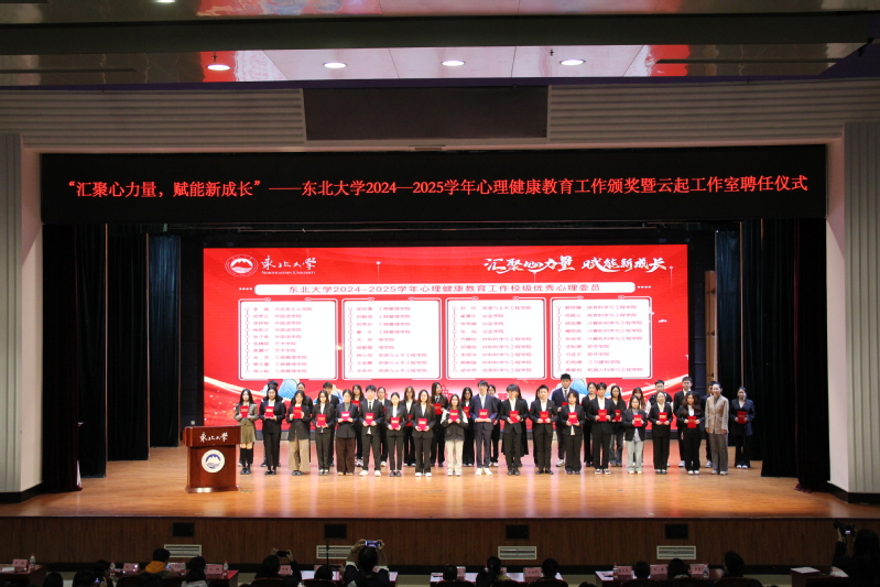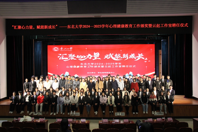 10月19日下午,“汇聚心能量,赋能新成长”东北大学2024—2025学年心理健康教育工作颁奖暨云起工作室聘任仪式在汉卿会堂蔡冠深报告厅举行。学生指导服务中心相关负责人、心理健康教育中心有关教师、各学院心理辅导员、2025级新生心理委员等400余人参加活动。
